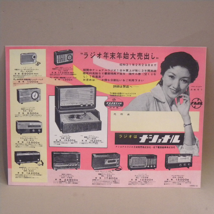 - 1950年代 当時物 松下電器 ナショナル ラジオ チラシ 高峰秀子 d ( 古い 昔の ビンテージ 昭和レトロ 昭和家電 広告 宣伝 宣材 )