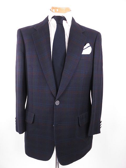 > 【送料無料】美品 ニューヨーカー NEWYORKER テーラードジャケット 薄っすらチェック柄 紺 茶 緑 A5/M