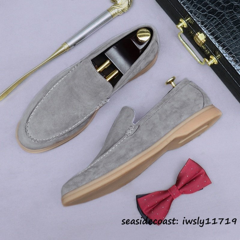 - 最高級★ビジネスシューズ 本革 メンズ ドライビングシューズ 職人手作り ローファー スリッポン スエード革 紳士靴 革靴 グレー 26.5cm