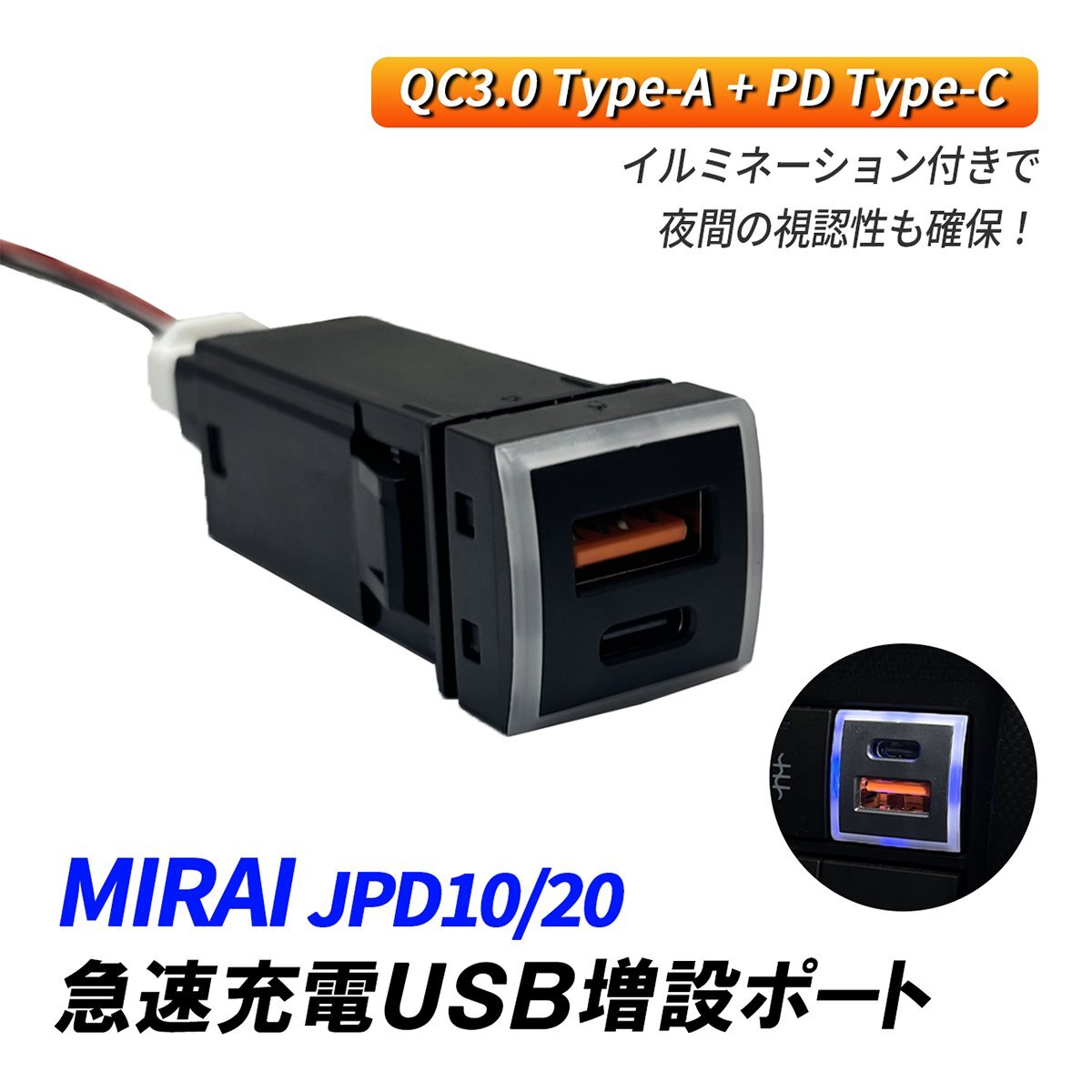 > ミライ MIRAI USB 増設 車 USBポート 埋め込み トヨタ Dタイプ QC3.0 PD3.0 急速充電 USB電源 スイッチホール パネル 内装 カスタム パーツ