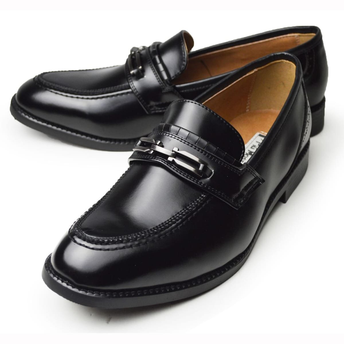 - 新品■26.5cm 本革 レザーシューズ スリッポン 幅広 3E メンズ ビジネス ローファー 革靴 学生靴 コンフォート 黒 PIU MOSSO ピウモッソ