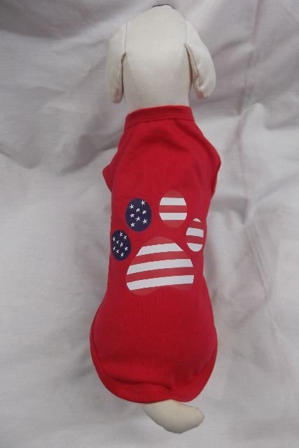 > ◎即決・送料無料新品★犬の洋服 半袖Tシャツ 肉球柄 レッド Lサイズ M・ダックス、トイ・プードルなど