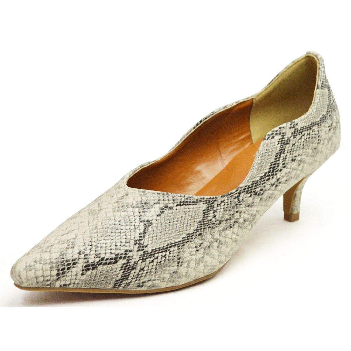 - 在庫処分■新品【24~24.5cm】レディース パンプス 5cm キトゥン ヒール Vカット ポインテッドトゥ クッション パイソン【エコ配送】