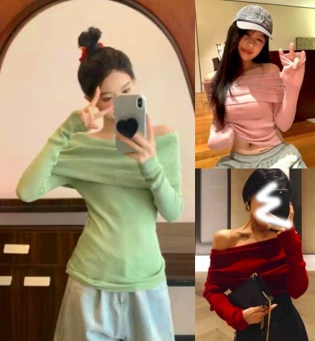 - ニット 切り替え スリム 着痩せ カットソー シンプル フリー ブラック
