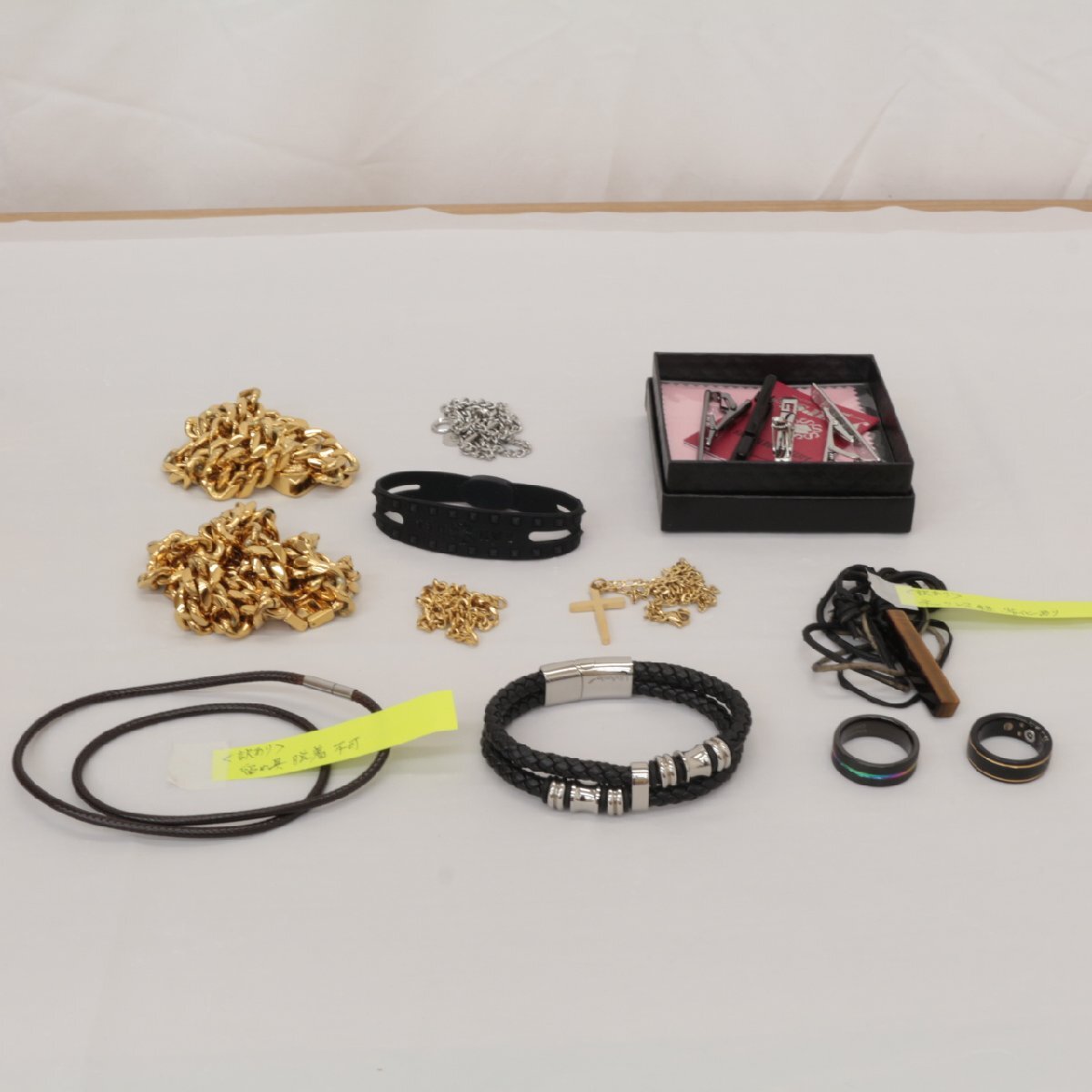 > 1594〒「アクセサリー 12点まとめ売り(訳あり2点含む)」ネックレス/リング/ブレスレット等 ステンレス・レザー NC/NR【0409】