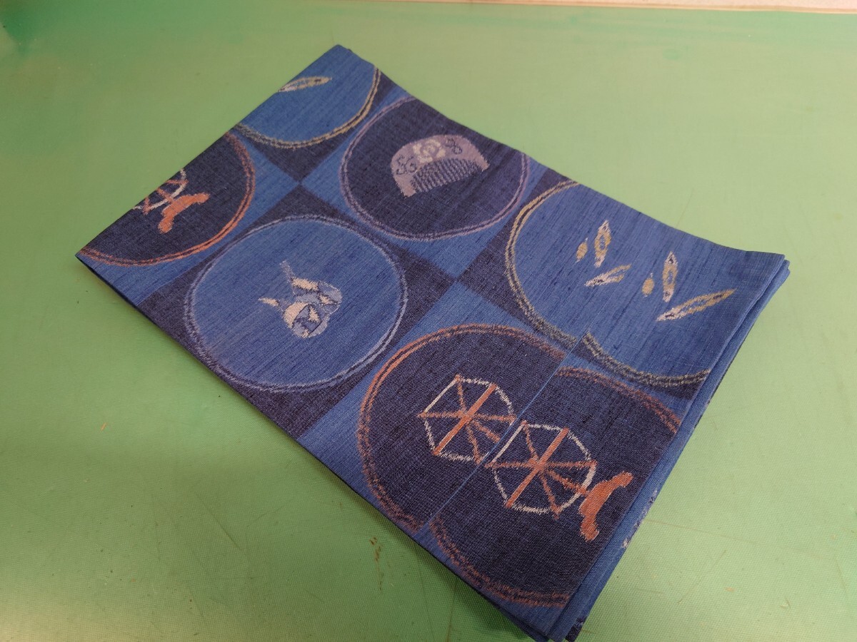 - ● 242 素敵な 紬 名古屋帯 帯 存在感抜群 可愛い 櫛 クワイ 柄 藍色 藍染 中古 ③