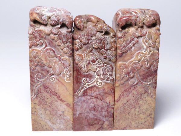 - 【12248】中国 書道具 寿山石 獅子 彫刻 印材(初品・買取品)