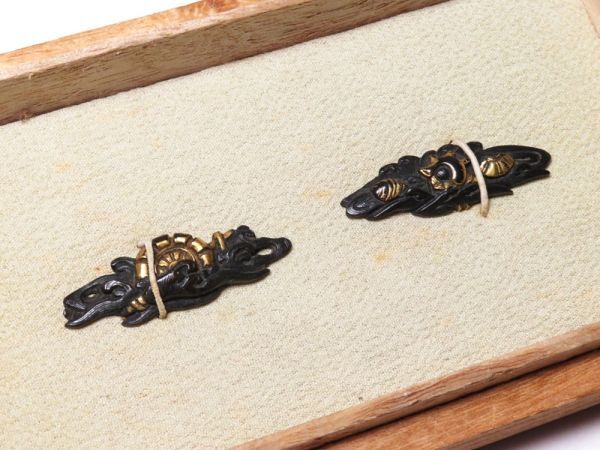 - 【12323】刀装具 江戸~明治 オリジナル 赤銅 水車 彫金 目貫(初品・買取品)
