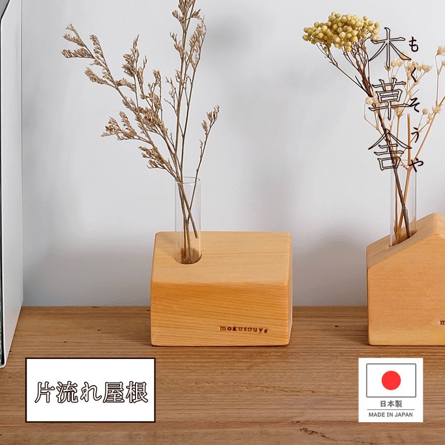 - 木草舎 野の花挿し おうち 片流れ屋根 日本製 花瓶 木製 フラワーベース 一輪挿し デスク 雑貨 インテリア オブジェ 置物 ナチュラル 植物