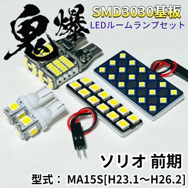 > ソリオ 前期 MA15S [H23.1~H26.2] 爆光基盤 3030SMD LED ルームランプ バックランプ ナンバー灯 セット 室内灯 車検対応 パーツ