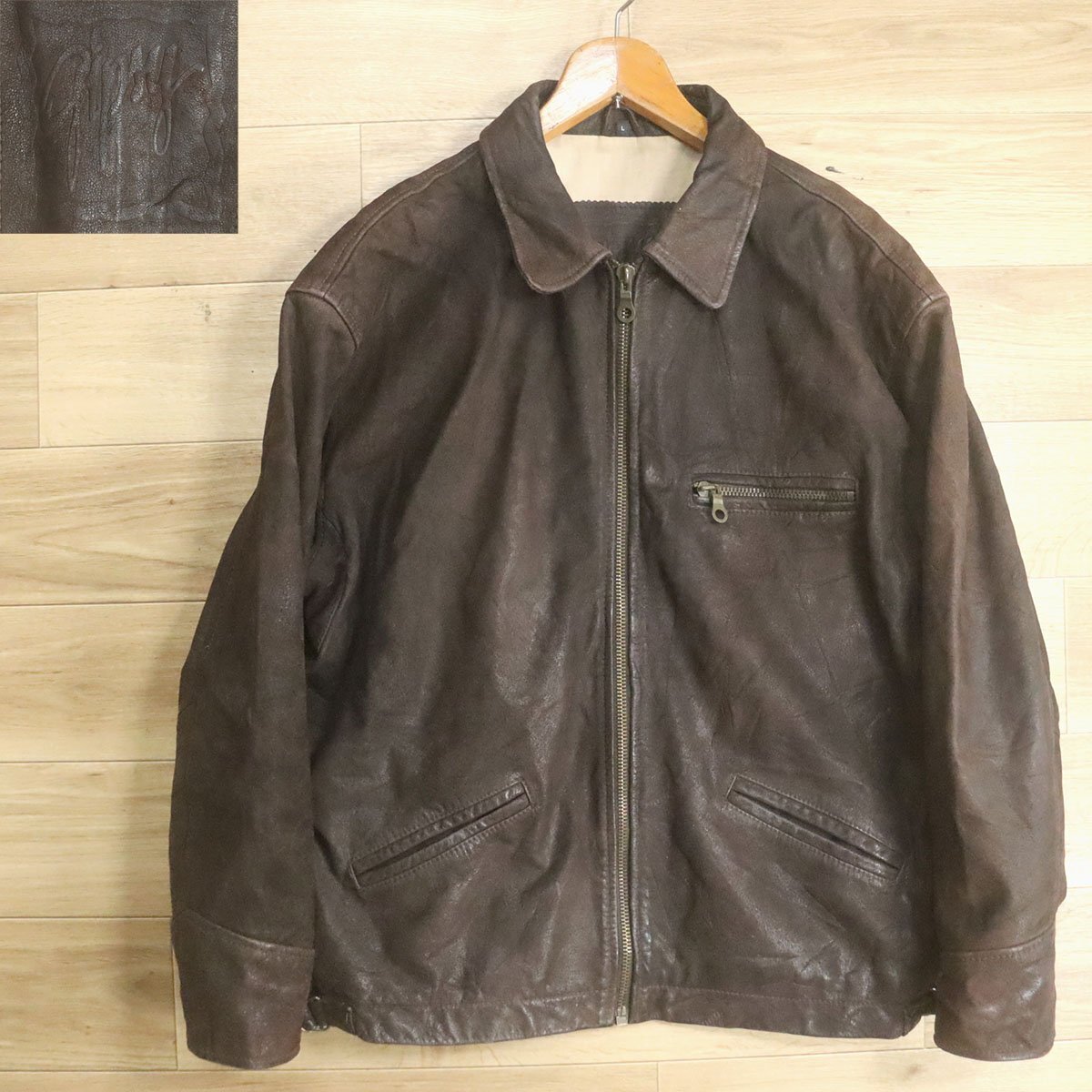 - B15S/S6.10-2 ユーロ古着 GIPSY シングルライダース 本革 レザージャケット スポーツジャケット 革ジャン 皮ジャン L ブラウン