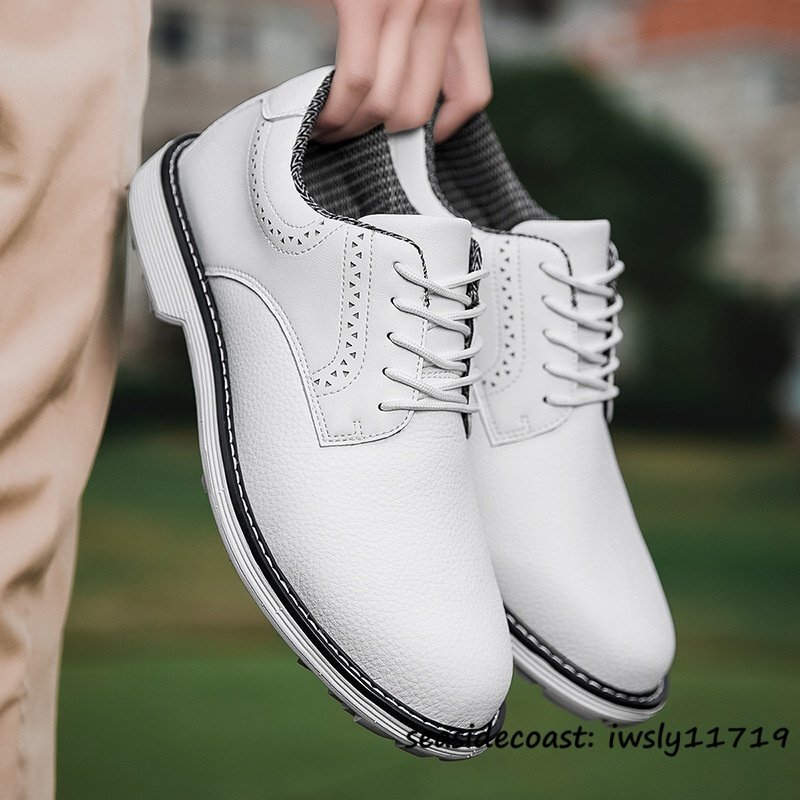 - 超希少 メンズ ゴルフシューズ イギリス風 通気性 高級品 スニーカー スパイクレスシューズ 超軽量 フィット感 防滑防水 ホワイト 26.0cm