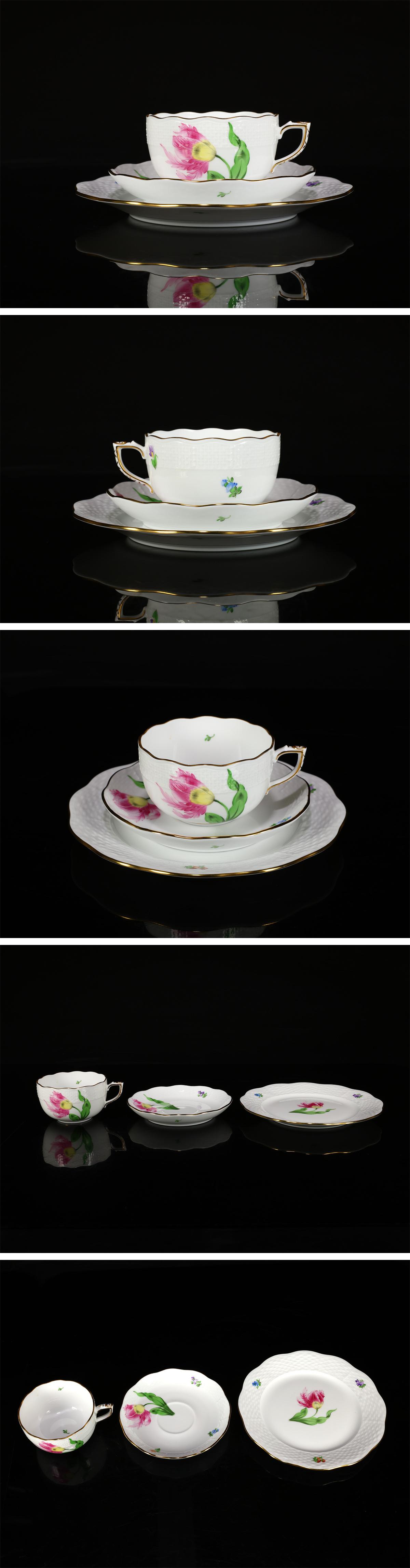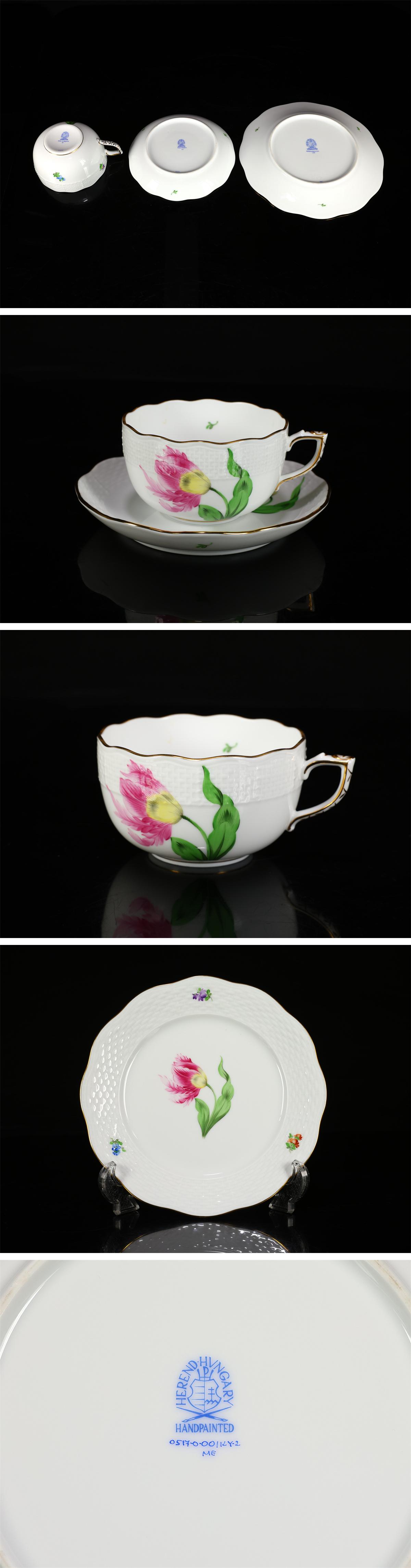 > 【吉】CN288 Herend 【ヘレンド】 金彩蘭花紋 カップ&ソーサー プレート 1組 3点セット/美品!