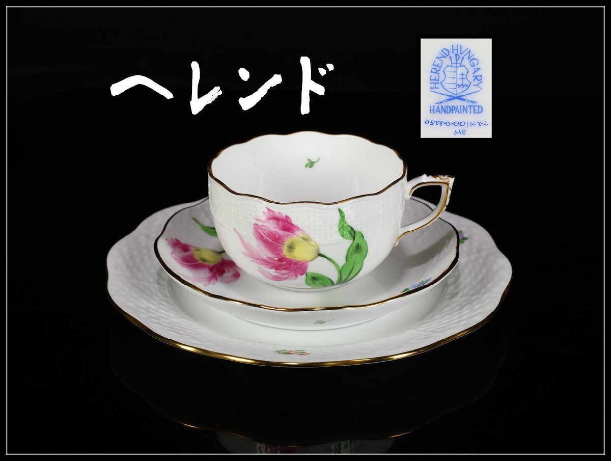 - 【吉】CN288 Herend 【ヘレンド】 金彩蘭花紋 カップ&ソーサー プレート 1組 3点セット/美品!