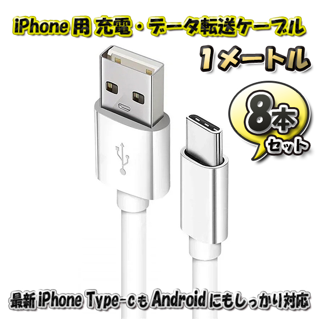 - 最新 iPhone Type-C 対応 Android 充電 データ転送 ケーブル 1m x8本セット 【カラー:ホワイト】全国送料無料