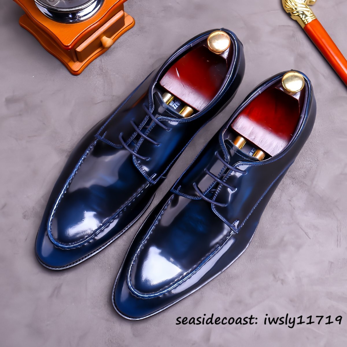 - 最高級★定価9万 ビジネスシューズ メンズ 本革 レザーシューズ 上質牛革 フォーマル 紳士靴 ヴィンテージ職人手作り 革靴 ブルー 27.5cm