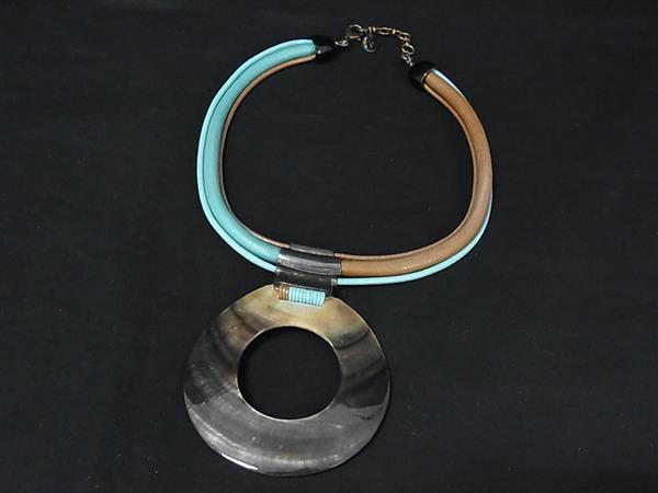 > Nature bijoux ナチュールビジュー レザー シェル ネックレス アクセサリー レディース ブラウン系×ターコイズブルー系 DI8482