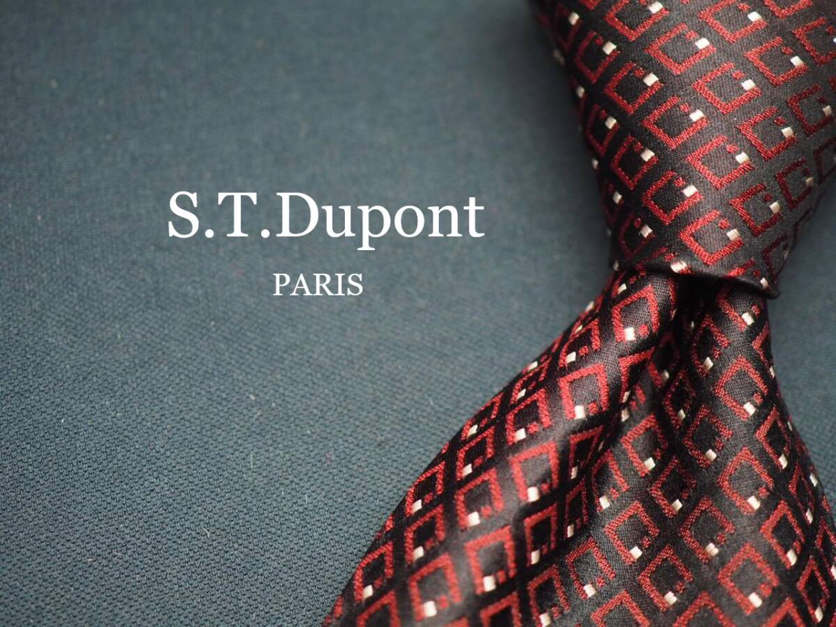 - 美品【S.T.Dupont デュポン】 G1461 ワインブラック系 SILK ブランド ネクタイ 古着 良品 転売 仕入