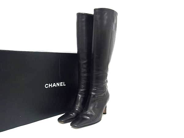 > 1円 ■美品■ CHANEL シャネル ココマーク レザー ヒール ロングブーツ サイズ 37(約24.0cm) 靴 シューズ レディース ブラック系 FE9986