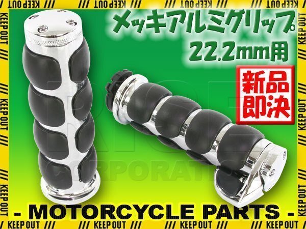 > 汎用 22.2mmハンドル用 メッキ アルミ グリップ 左右セット Aタイプ スロットルアシスト付き ハーレータイプ アメリカン