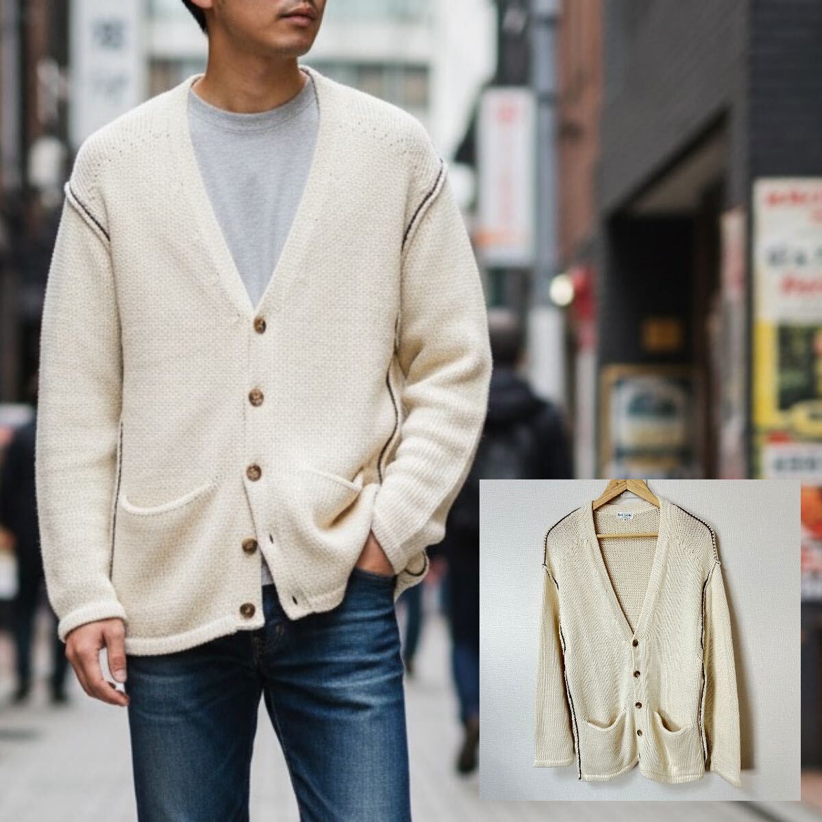 - ざっくりローゲージ◎【Paul Smith】ポールスミス Vネックニットカーディガン コットン 綿100% シンプル オフホワイト 白 メンズM/Y37804YY
