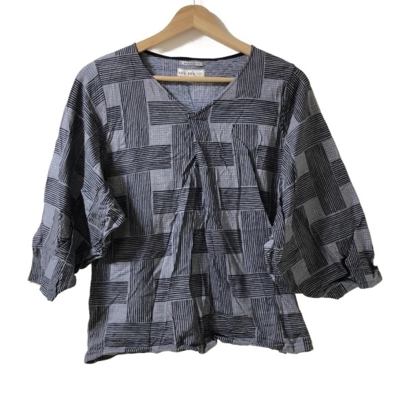 - ソウソウ SOU・SOU 七分袖カットソー サイズS - ダークグレー×黒×グレー レディース Vネック/チェック柄/ドット柄 トップス