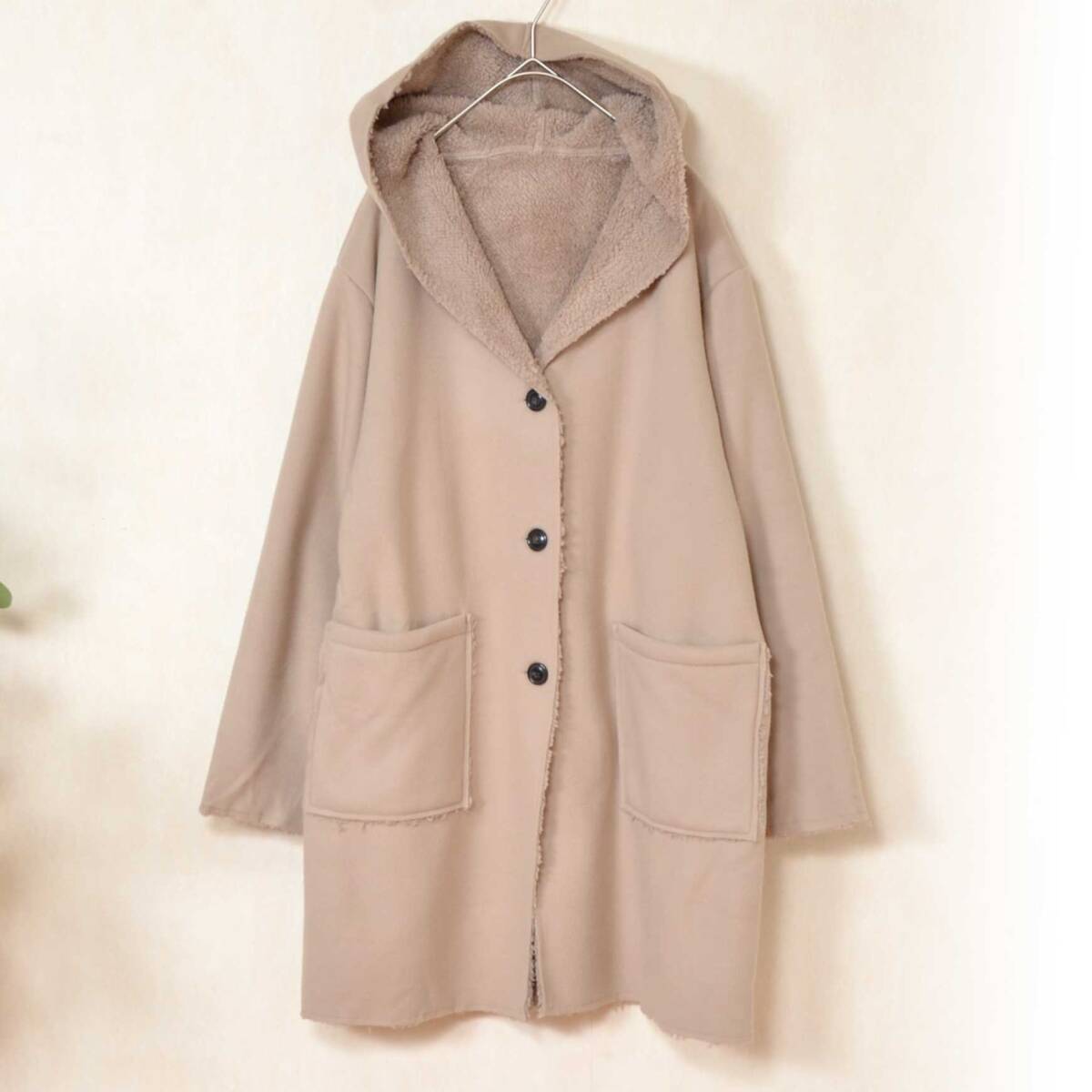 - 軽くてあったか 裏ボアフーディーコート レディース ミドル丈 ゆったり 体型カバー M〜L 秋冬 アウター 51543 ベージュ
