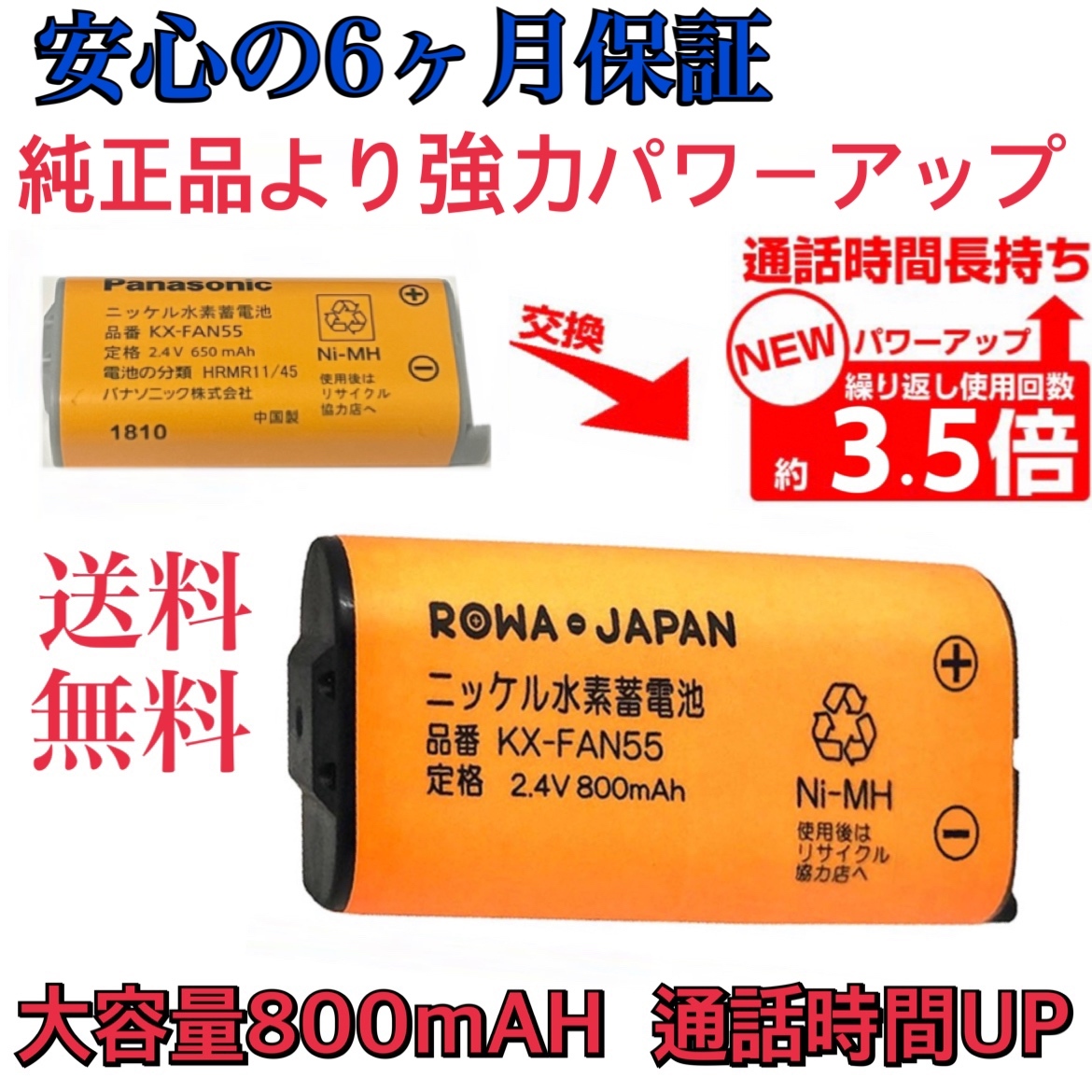 > ★VL-WD608VL-WD609VL-WD612VL-WD613VL-WD618VL-WD611KX-FAN55 BK-T409ワイヤレス子機パナソニックインターホン純正品より大容量長持ち★