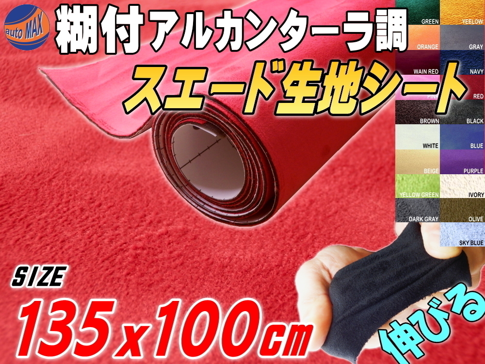 > スエード(大)赤 幅135×100cm伸びるアルカンターラ調スウェード生地スエードシート裏面糊付カッティング可 シート内装ステッカー車レッド 7