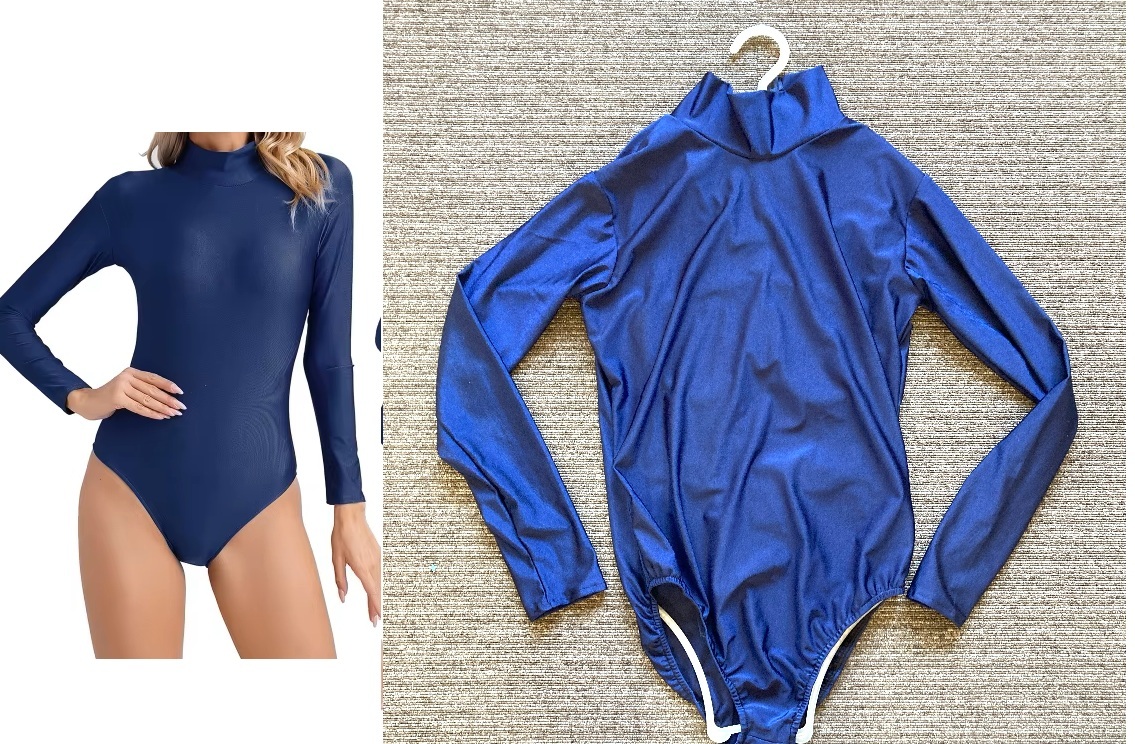- Mサイズ ネイビーブルーIEFIEL社オーダー製品 ポリエステル光沢 ツルツル 艶々 ボディスーツ背中ファスナーストレッチ レオタード