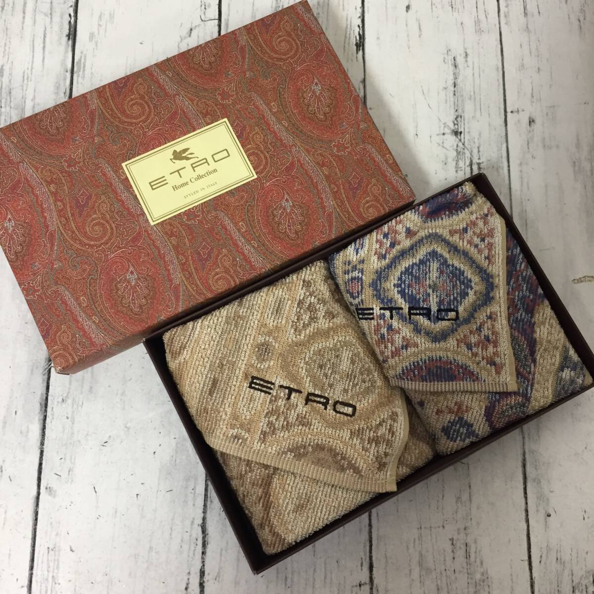 - ETRO エトロ ペイズリー柄 タオルハンカチ ミニテリー 2枚 箱付き Z51125