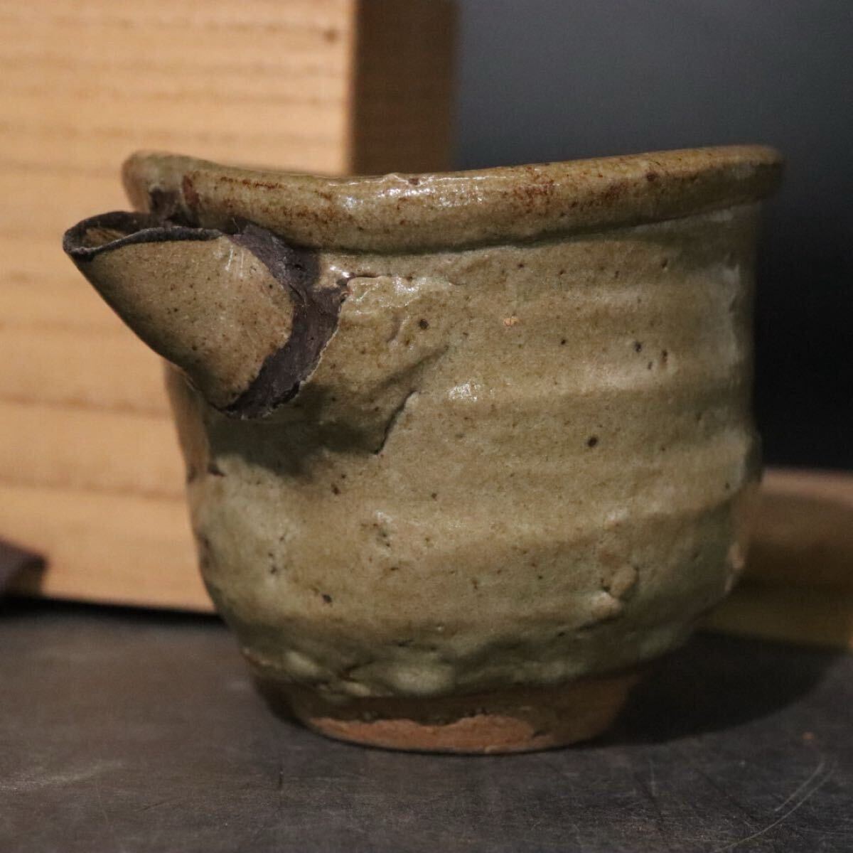 - 時代 古唐津 ひしゃげ 沓形 片口 木箱付 / 唐津 酒器 酒盃 煎茶道具 湯冷まし .B1351
