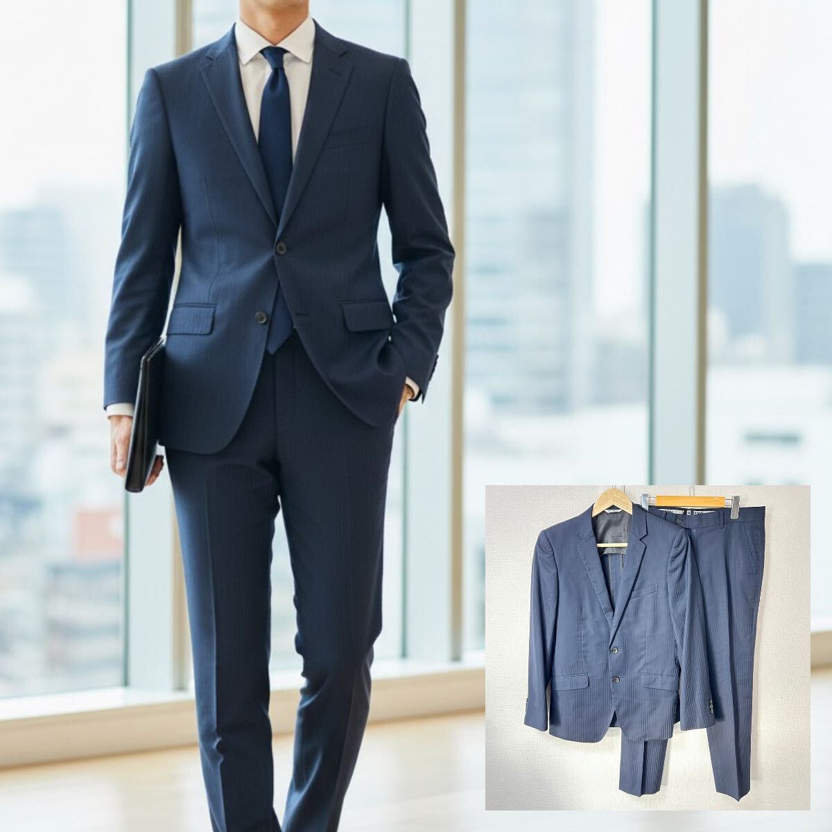 > セットアップ◎【renoma HOMME】レノマオム スーツ 上下セット ジャケット パンツ ウール ビジネス ネイビー 紺 メンズ90A4/Y37820YY