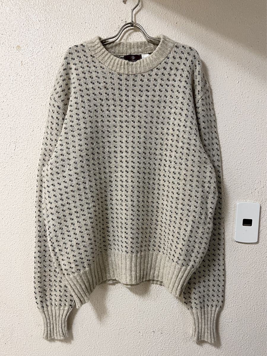 - 大きなサイズ 80〜90s CLASSIC DIRECTIONS ウール バーズアイ総柄デザイン ニット セーター