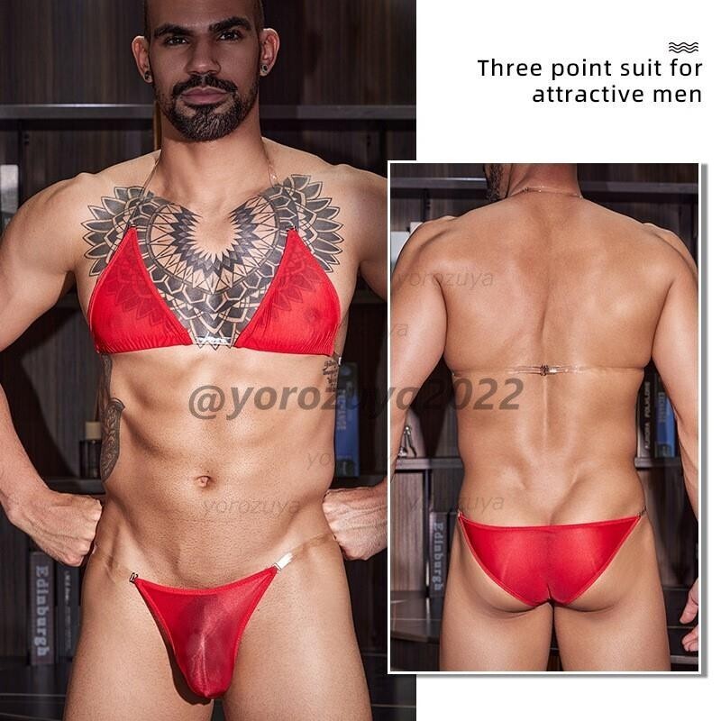 > 164-237-11 ランジェリー 上下セット メンズ ドエロ【レッドF】男性 下着 ゲイ マッチョ 過激 下着 パンツ ブラ ショーツ セクシー .1
