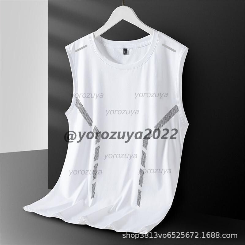 > 185-48-6 アイスシルク メッシュ ノースリーブ シャツ【ホワイトLサイズ】男性 メンズ インナー 速乾性 タンクトップ Tシャツ スポーツ .1