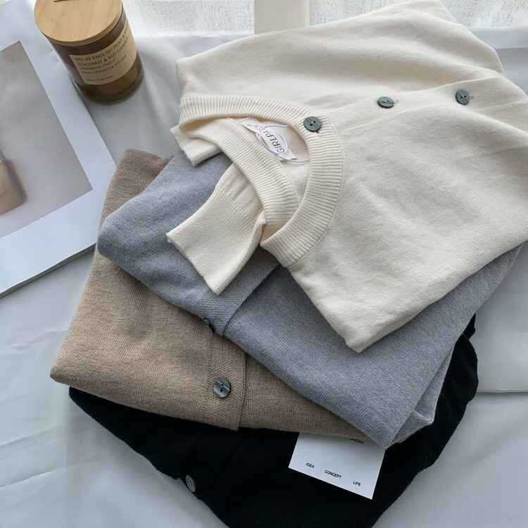 - ラウンドネック ニットカーディガン レトロ シンプル カジュアル フリー ベージュ