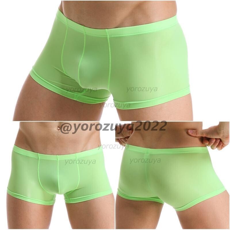 - 176-63-6 メンズ シースルー セクシー 透け ボクサータイプ【グリーンLサイズ】男性 下着 新品 インナー パンツ ビキニ ショーツ .1