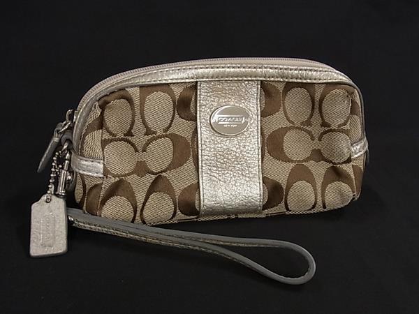 - COACH コーチ シグネチャー キャンバス×レザー リストレット アクセサリーポーチ 小物入れ マルチケース ブラウン系 DK8682