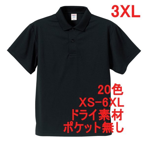 - ポロシャツ XXXL ブラック ドライ素材 ベーシック 無地 半袖 ドライ 吸水 速乾 胸ポケット無し A691 3XL 4L 黒 黒色 591001 5910-01 5910