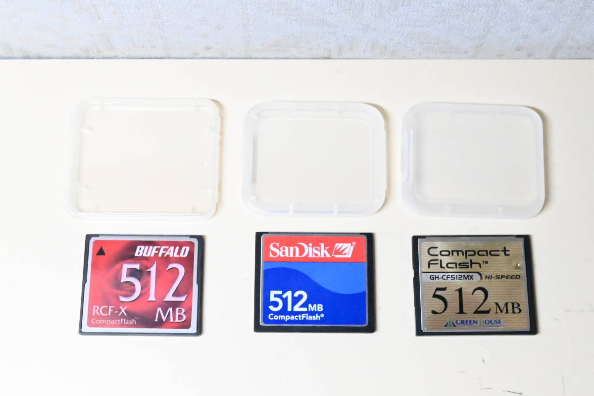 > コンパクトフラッシュ メモリーカード(CFカード) 512MB 3枚 動作確認済み CFカード ケース付き