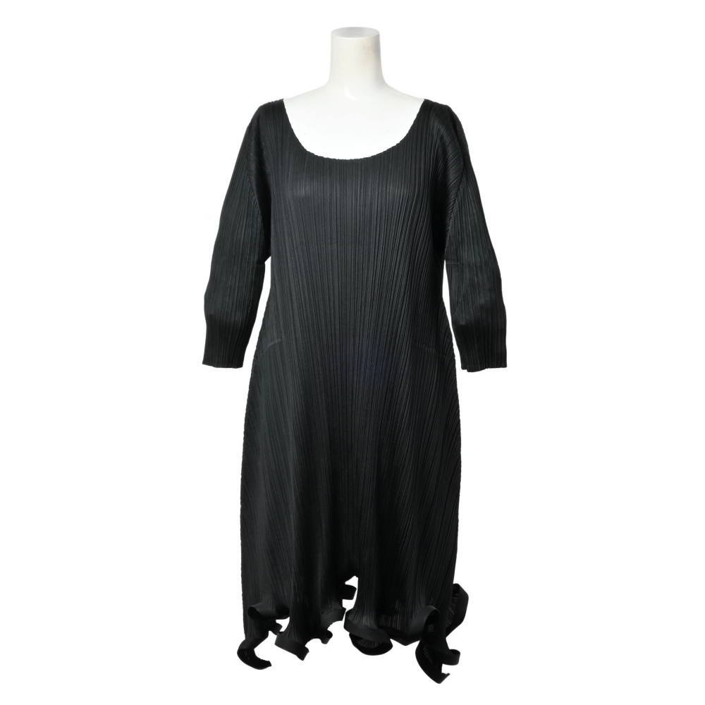 > 美品 PLEATS PLEASE 裾カール プリーツ ワンピース ドレス 4 ブラック プリーツプリーズ KL4BAQCK91