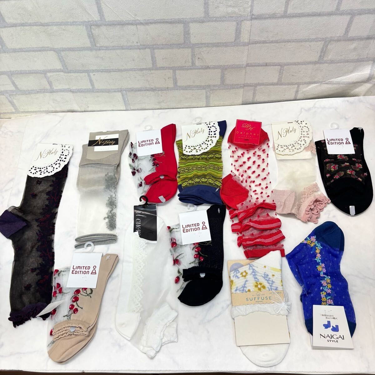 - 新品 12足セット 夏用 靴下 ソックス レディース ナイガイ LIMITED EDITION N-platz SUFFUSE 花柄 シースルー 23-25㎝ 青 白 花柄 黒 紫 赤