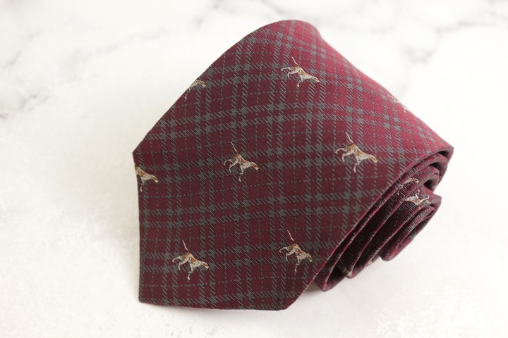 > ジェイプレス ブランドネクタイ チェック柄 小紋柄 動物柄 犬 シルク PO メンズ ワインレッド J.PRESS