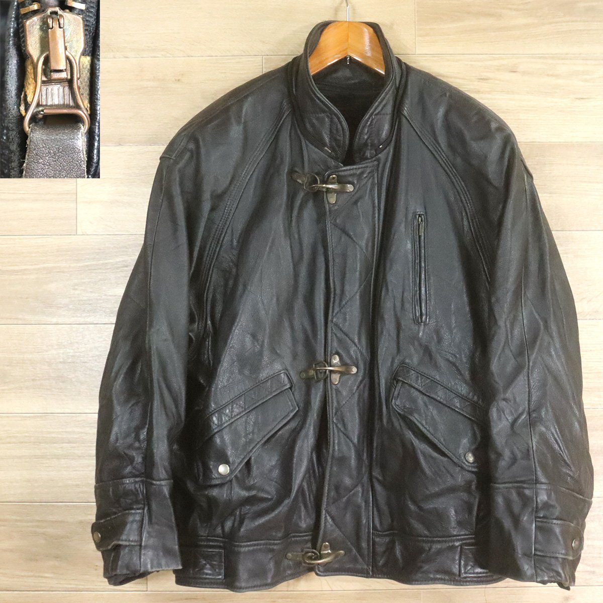 > &1T/O10.16-3 ユーロ古着 レザーファイヤーマンジャケット 本革 レザージャケット 皮ジャン 革ジャン XXL ブラック