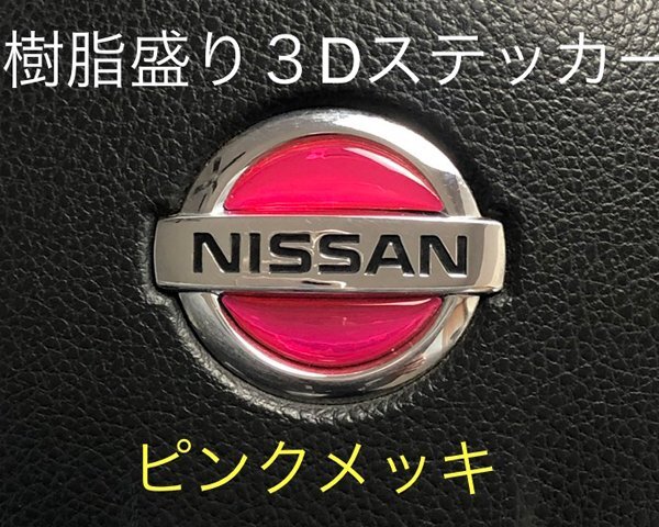 - 日産 ステアリング エンブレムシート ピンクメッキ SDH-N01 樹脂盛立体3D ハンドル ZEROWIN NISSAN 簡単取付