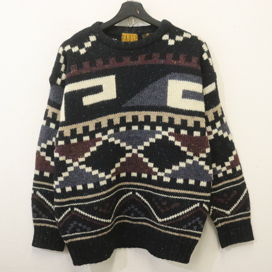 - Q981 90sビンテージ PAUSE ウールニットセーター■1990年代製 表記Sサイズ バーズアイ 柄 アメカジ ストリート 古着 古着卸 激安 00s