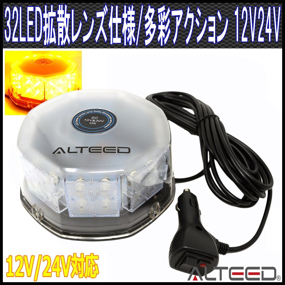 > ALTEED/アルティード LED回転灯/32LED/12V24V/丸型ビーコン/黄色[パトランプ/フラッシュライト/作業灯/警告灯/除雪作業灯/ストロボ]