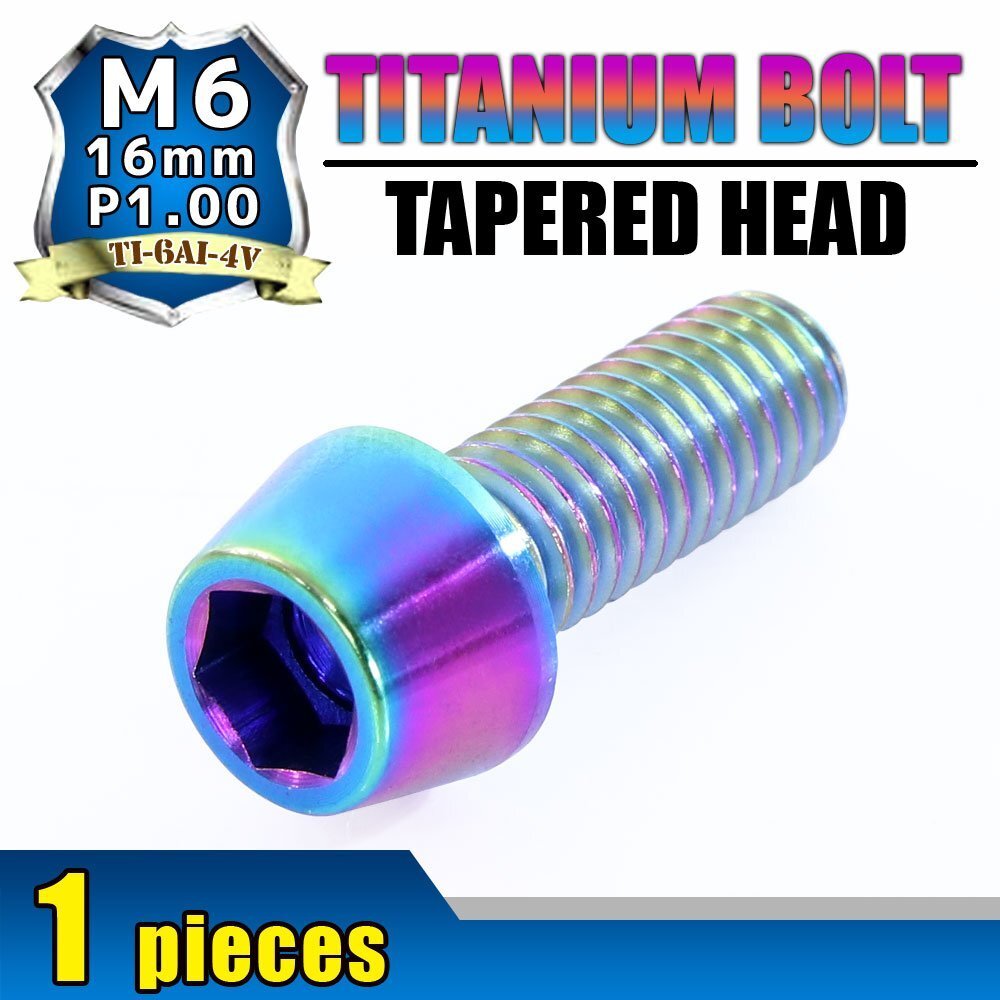 > メール便OK! M6×16 P1.00 チタンボルト 1本 6mm 16mm ピッチ1.00 焼き色 テーパーボルト キャップボルト クランクケース バイク
