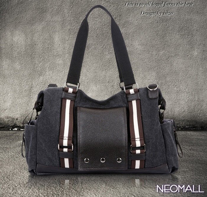 - シンプルデザイン 2way バッグ 【878】 ブラック ☆ キャンバス フライトバッグ ボストンバッグ ハンドバッグ 小旅行 通学 出張